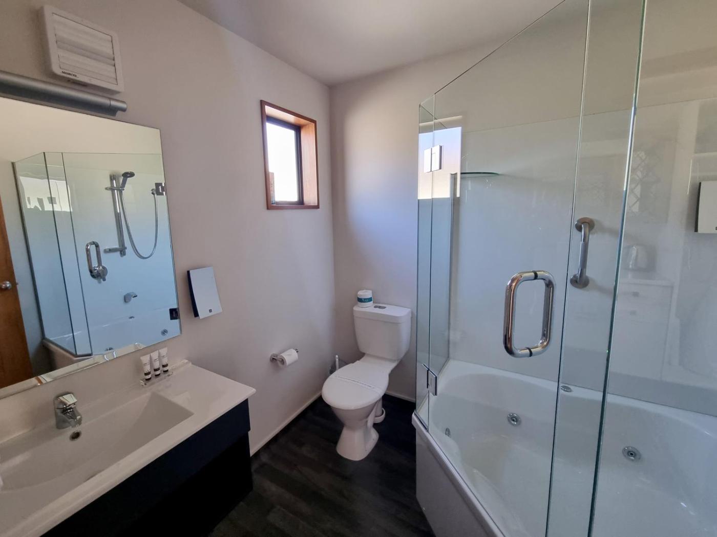Studio with Spa Bath. The spacious unit offers a queen and a single bed, a 2 seater couch and table and chairs. There is a kitchenette area with hot plates, microwave and fridge. This unit has a shower over a spa bath. ;