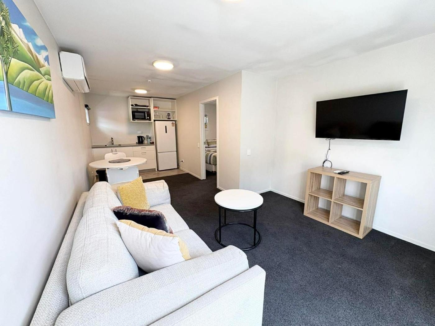 One-Bedroom Apartment. The well-fitted kitchenette features a refrigerator, kitchenware, a microwave and a toaster. This apartment is air-conditioned and has a flat-screen TV, a dining area, an electric kettle and a carpeted floor. The unit has 1 bed.