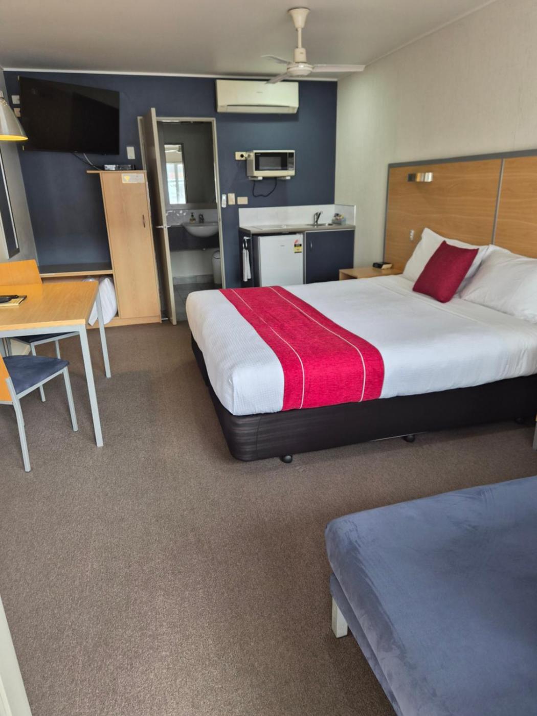 Two-Bedroom Suite. Two-Bedroom suite have separate bedrooms, a king-size bed in each bedroom. It also has living and kitchen areas (stovetop, microwave, toaster and fridge), 55" smart TV with Sky and air-conditioning. The Two Bedroom unit is a ground floor unit and also has a large wheelchair access bathroom. ;