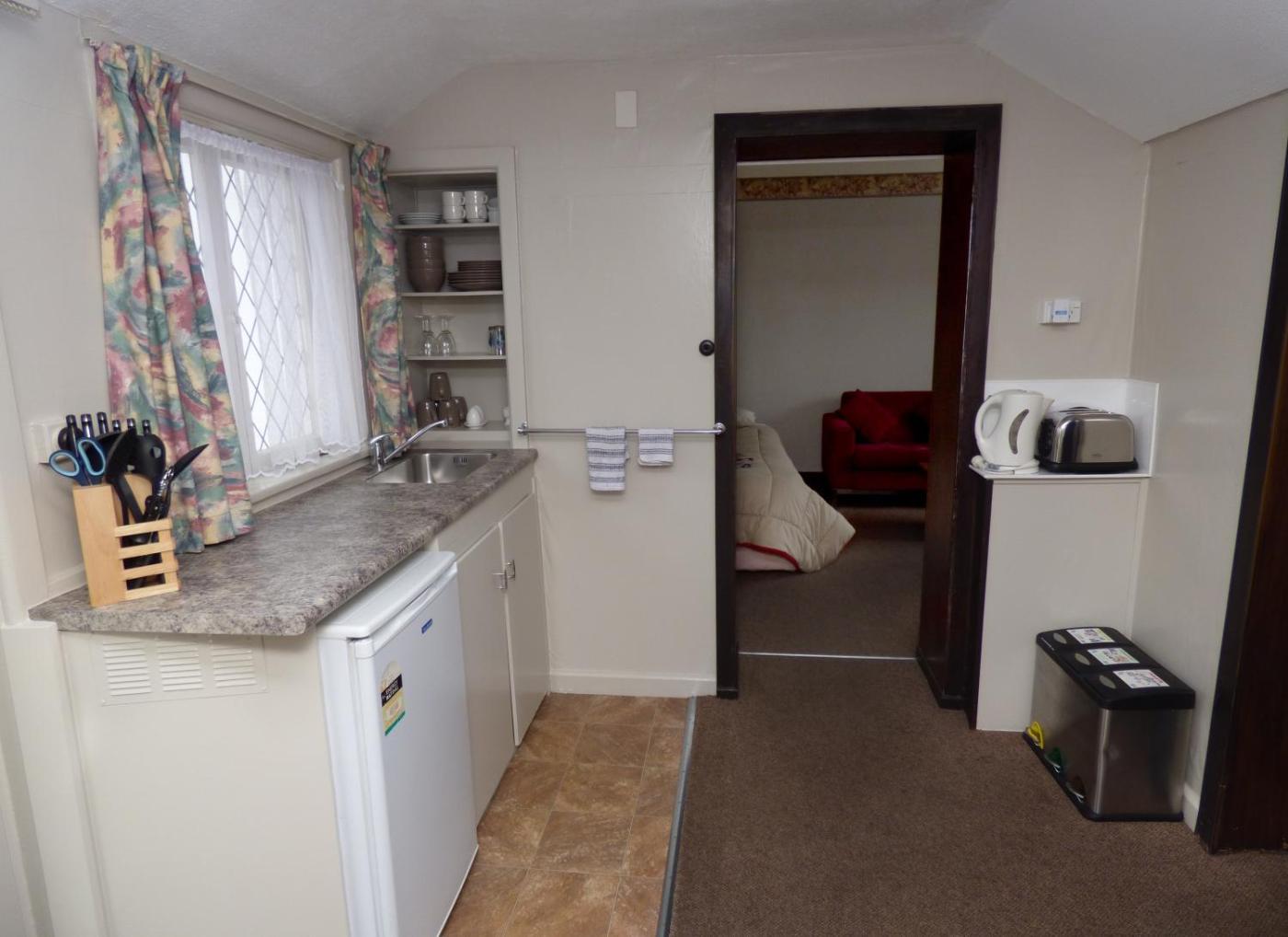 Studio. This small room includes an en suite bathroom, a microwave, toaster, jug and private entrance.